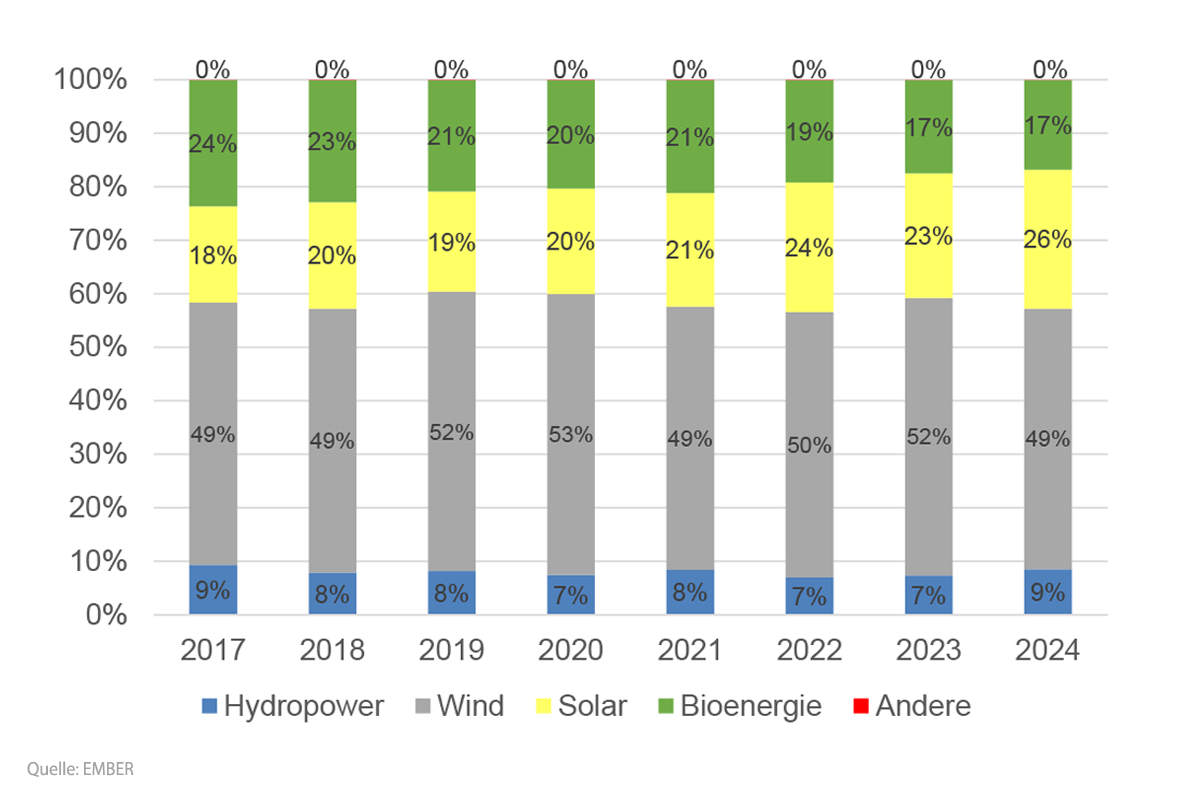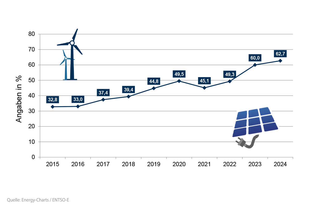 Der Anteil, den die Erneuerbaren Energien an der Nettostromerzeugung in Deutschland beitragen, ist in 2024 um über 4,5% gestiegen.