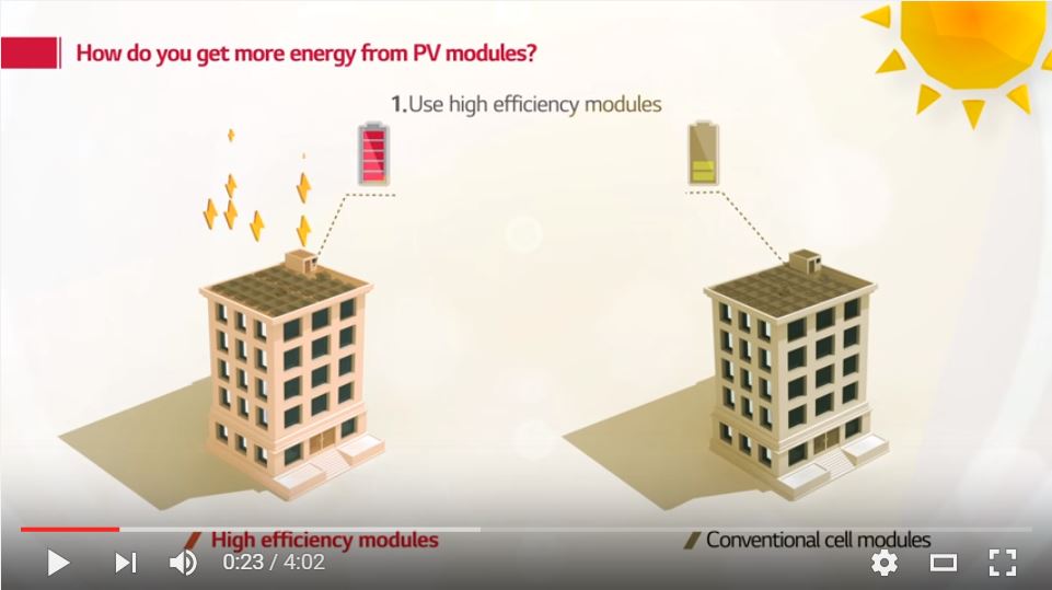 Større ydelse, højere udbytte, større pålidelighed: Det lover LG Solar’s produktnyhed, det monokrystallinske højefficiensmodul LG NeON™ 2 BiFacial. Produktet, som fik tildelt Intersolar Award 2016, bygger på LG’s prisbelønnede CELLO teknologi med 12 strenge. Takket være de bifaciale celler (dvs. celler som er aktivt på for- og bagsiden) og den transparente baggrundsfolie kan panelet dog nu absorbere energi både på modulfor- og –bagsiden og generere mere el. Det betyder, at ydelsen stiger.