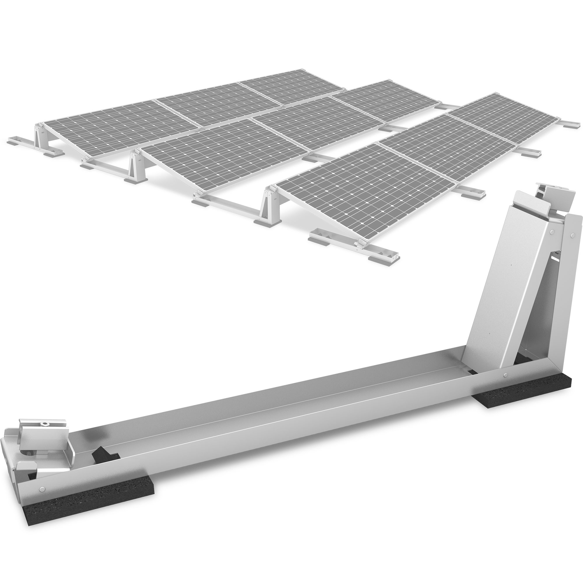 K2 Systems har udviklet et nyt stelsystem til flade tage, der kun består af en byggedel, to modulklemmer, en windbreaker og to beskyttelsesmåtter.
