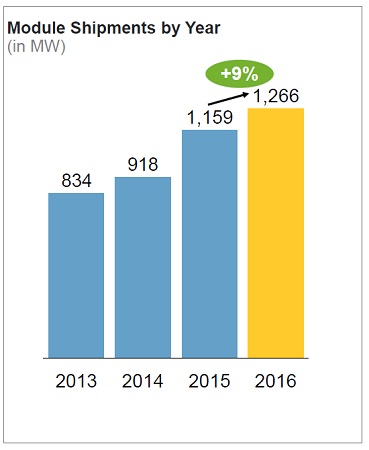 Rekordår for REC: Ifølge den netop offentliggjorte rapport for fjerde kvartal / året 2016 øgede modulproducenten med norske rødder sit globale salg på 9 % til 1,26 GWp. I fjerde kvartal solgte virksomheden 349 MWp, som er REC’s næstbedste resultat nogensinde.