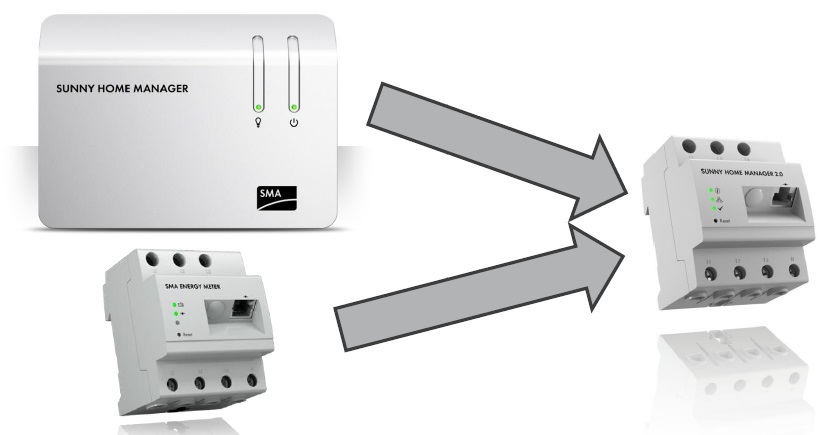 To apparater bliver til et: SMA har præsenteret den nye Sunny Home Manager 2.0. Den kombinerer den intelligente energistyringsfunktion af Sunny Home Manager HM-BT-10 og målingsfunktionen af SMA Energy Meter i én enhed. Installations- samt systemomkostningerne kan ved hjælp af denne kompakte løsning reduceres.