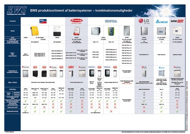 Et nyt oversigtsark vil kaste lys over denne situation: Det vil give dig et hurtigt overblik over de tekniske detaljer for alle invertere og solbatterier i EWS produktsortimentet og præsentere de tilgængelige kombinations- og konfigurationsmuligheder.