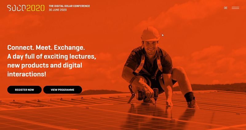 I samarbejde med andre velkendte aktører i branchen som Fronius, Trina Solar, SMA, REC, KOSTAL eller SolarEdge præsenterer K2 Systems en digital solcellekonference, der finder sted den 30. juni 2020: SOCO 2020.