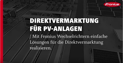 Um die Kommunikation zu Netzbetreiber und Direktvermarkter sicherzustellen, wird bei Fronius eine Schnittstellenbox, die vom Direktvermarkter zur Verfügung gestellt wird, in das System integriert. Da die Fronius-Wechselrichter serienmäßig mit offenen Schnittstellen ausgestattet sind, ist diese Zusammenarbeit problemlos möglich. Wie die Umsetzung genau funktioniert, erfahren Sie im Direktvermarktungsvideo am Beispiel einer Megawatt-Anlage in Süddeutschland.