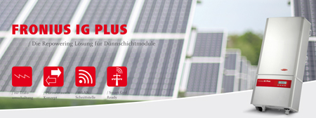 Speziell für Dünnschichtmodule bietet Fronius mit dem IG Plus eine Trafo Repowering-Lösung an. Die Wechselrichterserie zeichnet sich durch folgende Produktvorteile aus: