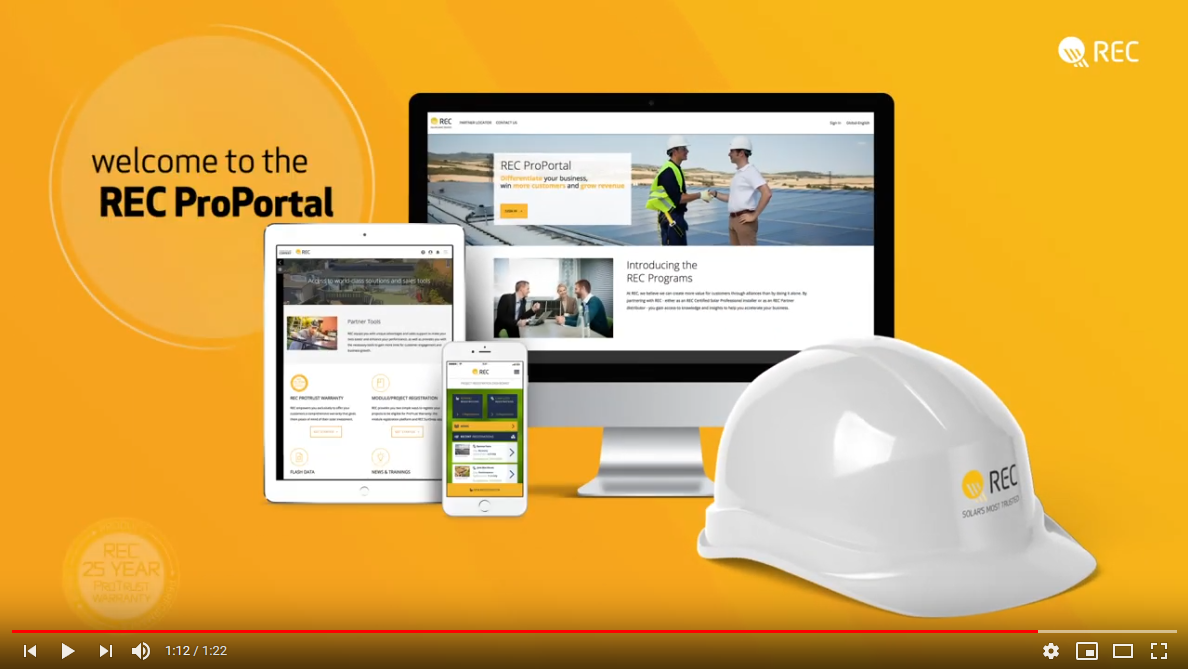 REC hat eine neue Plattform für seine Solar Professional Partner geschaffen: das REC ProPortal. Unter www.recgroup.com/proportal haben zertifizierte REC Installateure hiermit ab sofort eine zentrale Anlaufstelle für ihre Zusammenarbeit mit der Solarmodulmarke – und Zugriff auf alle Informationen, Vorteile und Online-Tools.