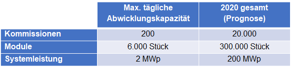 In der Spitze könnten aktuell pro Tag bis zu 200 Kommissionen abgewickelt werden. Bei mehr als 1.200 Stammkunden in zehn wachsenden PV-Märkten Nordeuropas ist eine zeitnahe Steigerung der Kapazitäten unabdingbar.