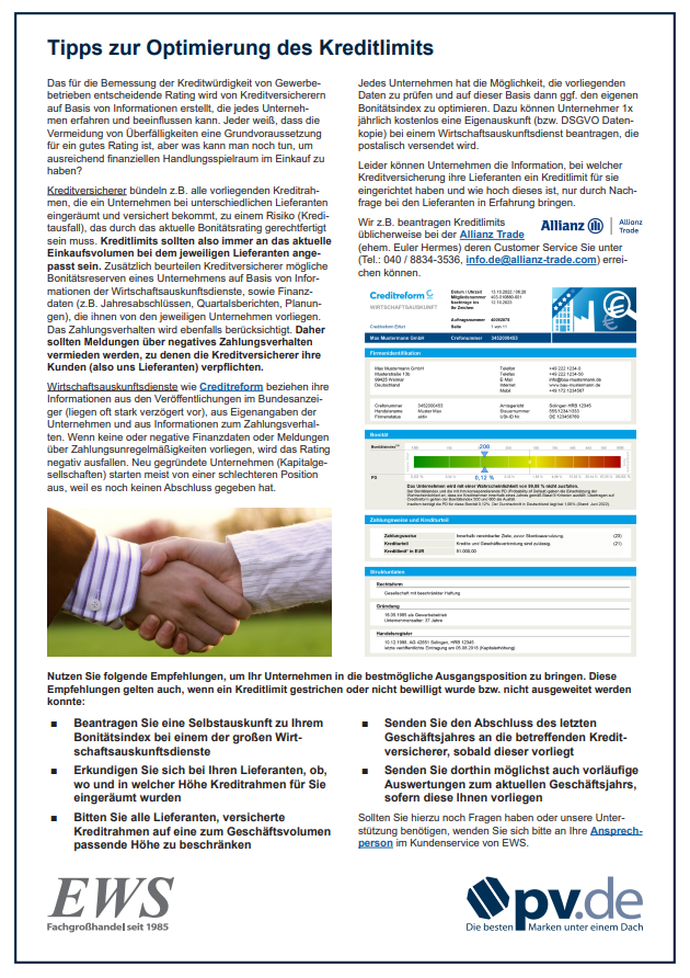 In unserem Merkblatt "Tipps zur Optimierung des Kreditlimits" haben wir für Sie die wichtigsten Informationen zusammengefasst: