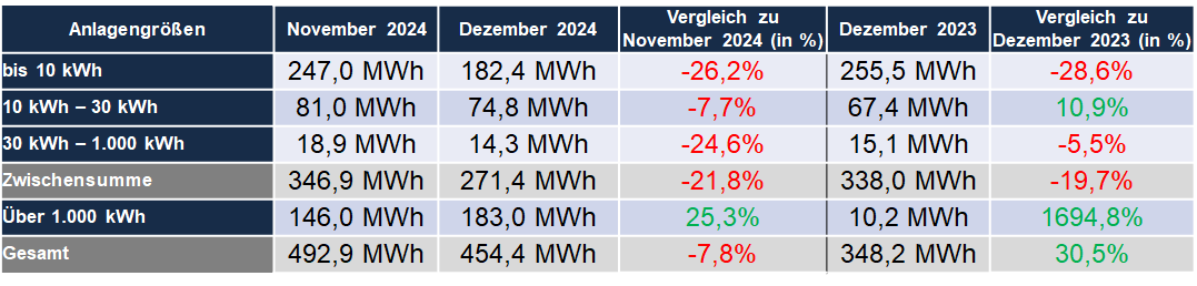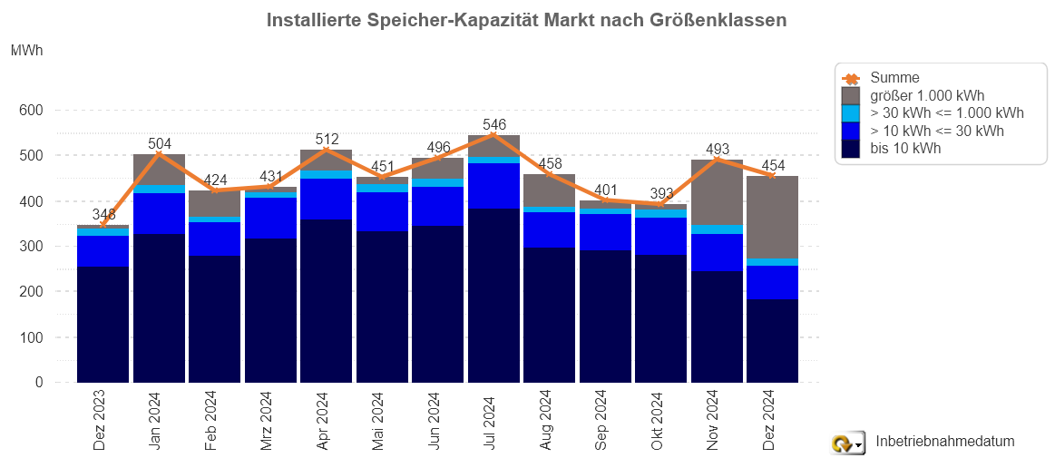 Installierte Speicherkapazität nach Größenklassen (Dezember 2023 - 2024)