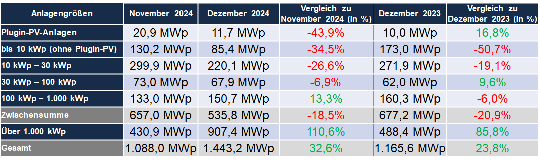 PV-Meldezahlen Dezember 2023 bis Dezember 2024 (nach Monaten)