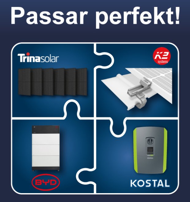 Trina Solar är en ledande global leverantör av helhetslösningar för solenergi. Företaget grundades 1997 och är idag verksamt i över 100 länder och regioner. Trina Solar utvecklar solcellsmoduler, energilagringssystem, intelligenta system- och driftlösningar och erbjuder sina kunder skräddarsydda lösningar för systemintegration. Vertex S DE09R.05W är en Fullblack-modell i Trinas Vertex S-serie och har en maximal nominell effekt på 425 Wp och en maximal verkningsgrad på 21,3%. Vår modulpartner ger 15 års produktgaranti och 25 års prestandagaranti för sin glasfilm-modul baserat på P-Type celler.